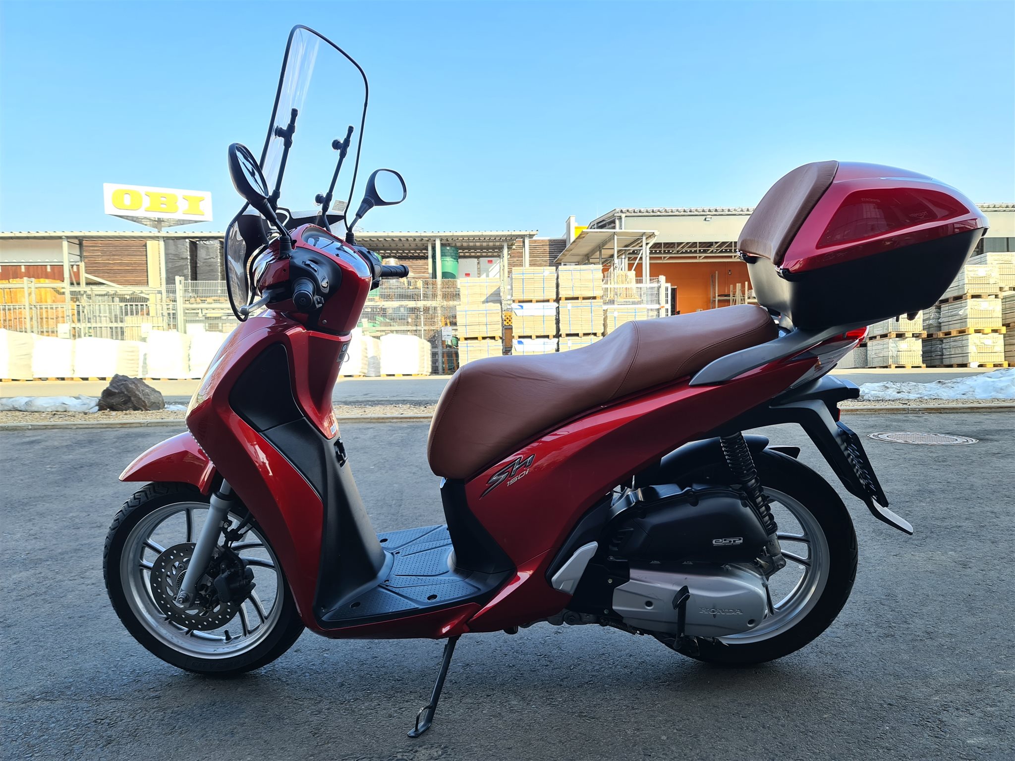 Honda SH 150i mit Windschild, Top Case, Stauraum unter den Sitz, 799mm Sitzhöhe, 137kg fahrfertig Pickerl bis 08.2026.