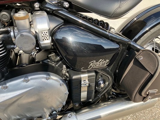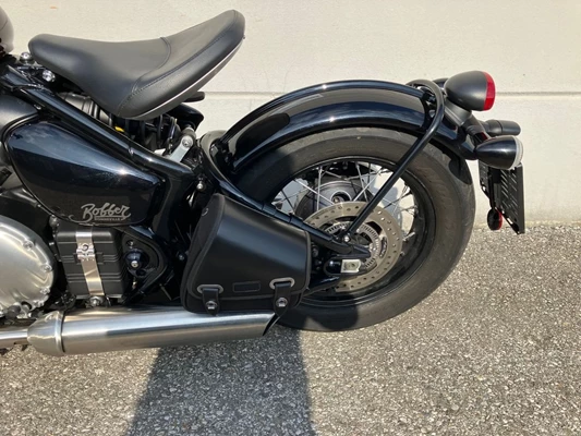 Schöne Triumph Bonneville Bobber in Morello Red aus Erstbesitz mit wenig Kilometer inkl. kleine Seitentasche links.